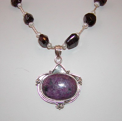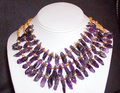 16" choker with violet quartz pendant. Three