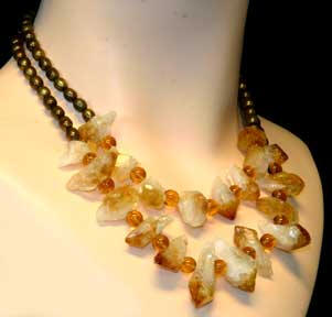 strands of citrine, garnet and pink jade beads. Sterling silver