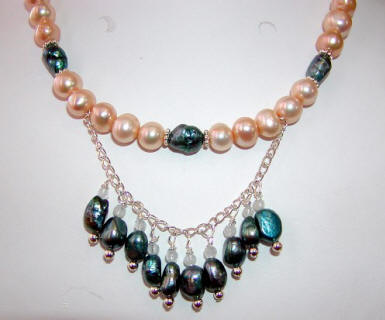 freshwater pearls, faceted faux aquamarine. I believe the clear