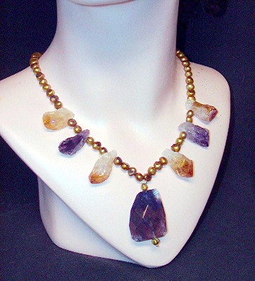 amethyst and citrine crystals, large faceted colored quartz pendant,